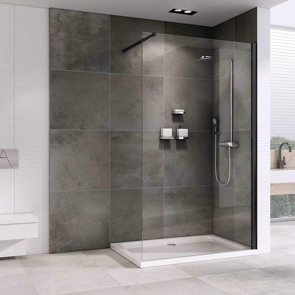 Душевая перегородка Abber Immer Offen 100 см AG61100B8 (стекло 8 мм), черный/прозрачное