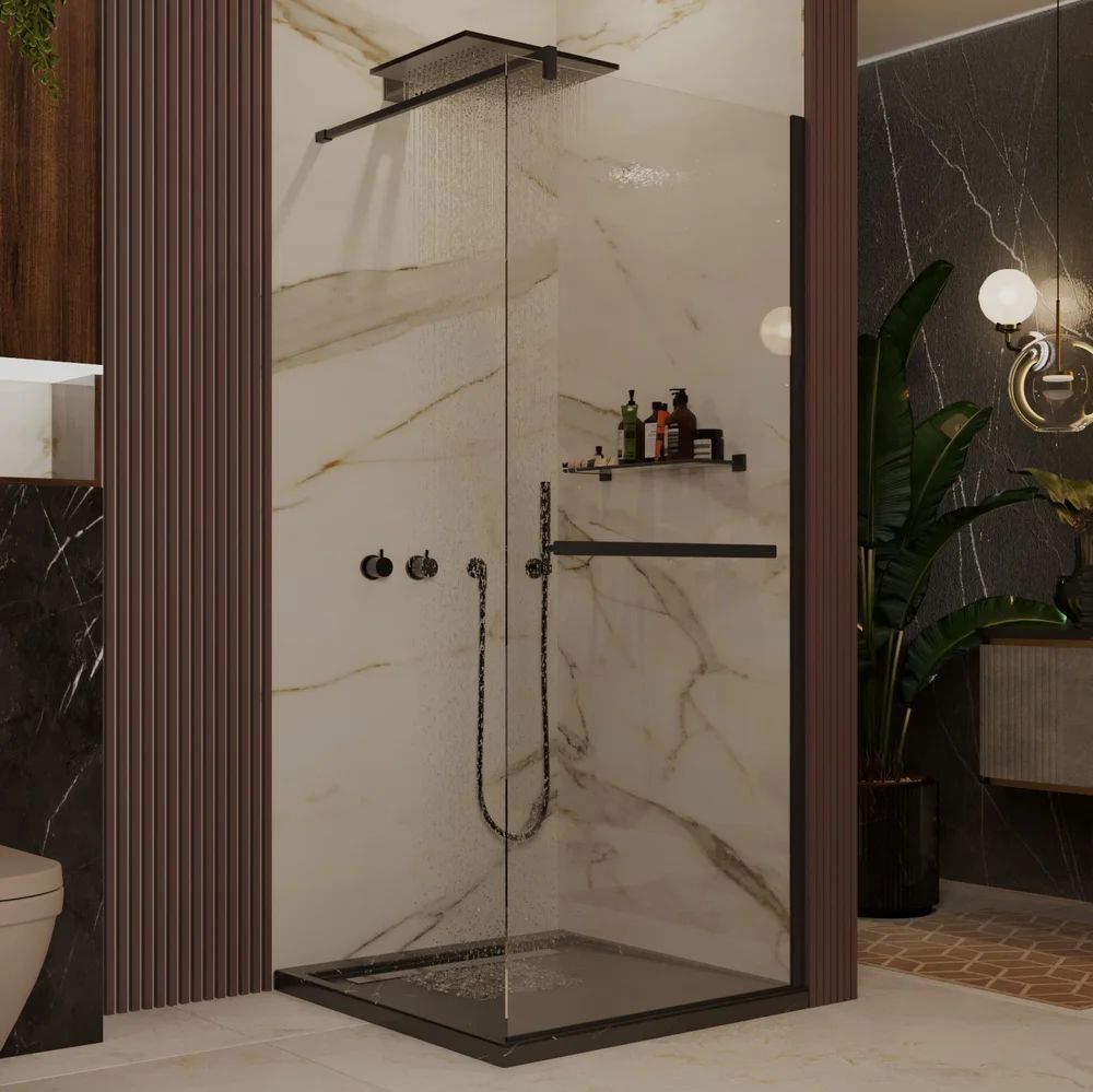Душевая перегородка Ambassador Walk-in 110 см 15031234 с кронштейном (стекло 8 мм) чёрный/прозрачное