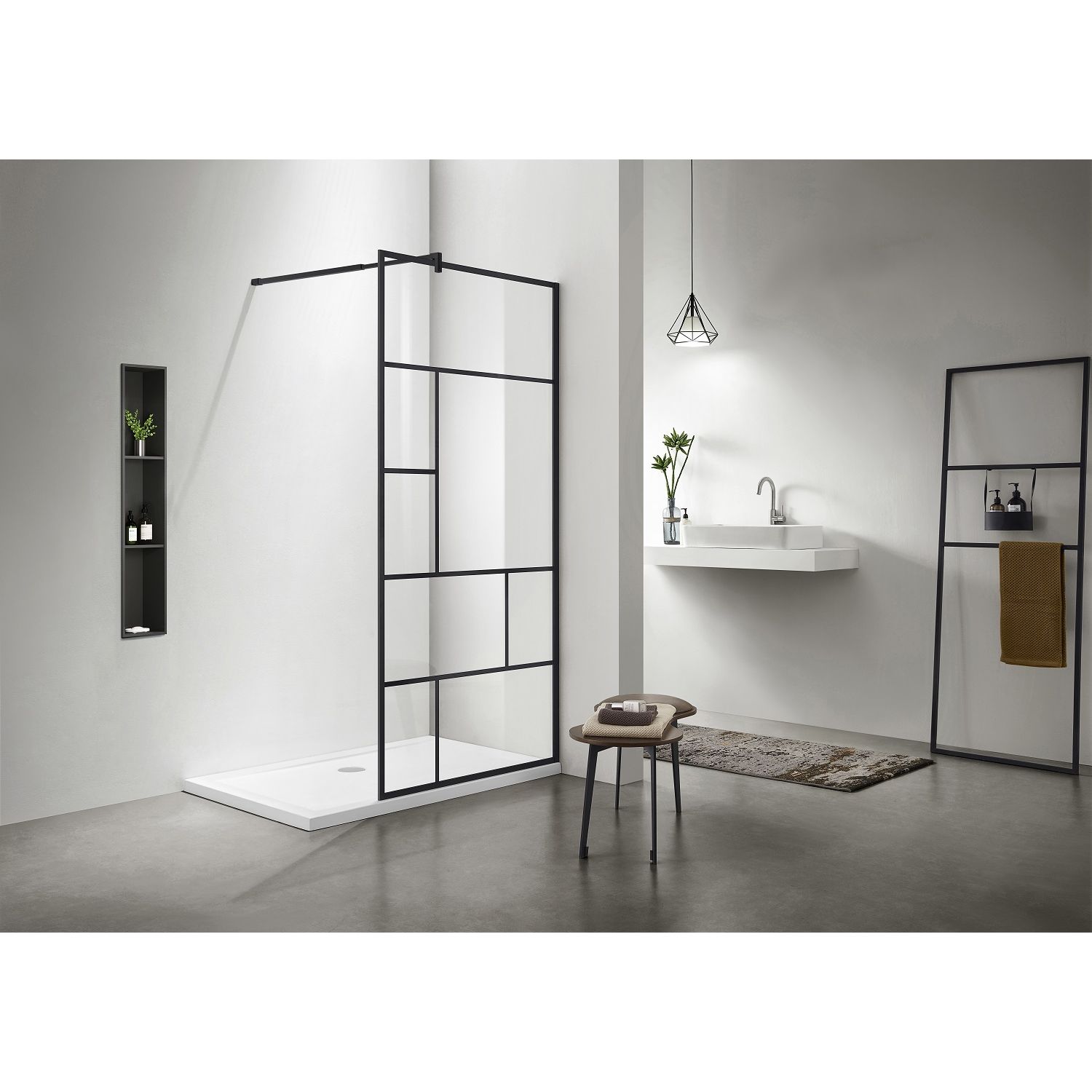 Душевая перегородка Aquatek Walk in AQ WIW Print 10020BL, держатель в комплекте, размер 1000х2000 мм, профиль чёрный, стекло прозрачное.