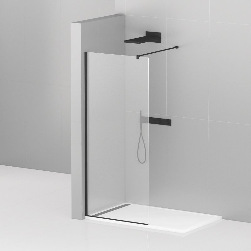 Душевая перегородка Cezares 120 см LIBERTA-L-1-120-120-C-NERO (подрезаемый кронштейн, стекло 8 мм) черный/прозрачное