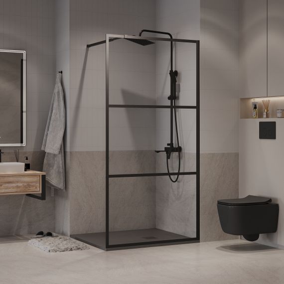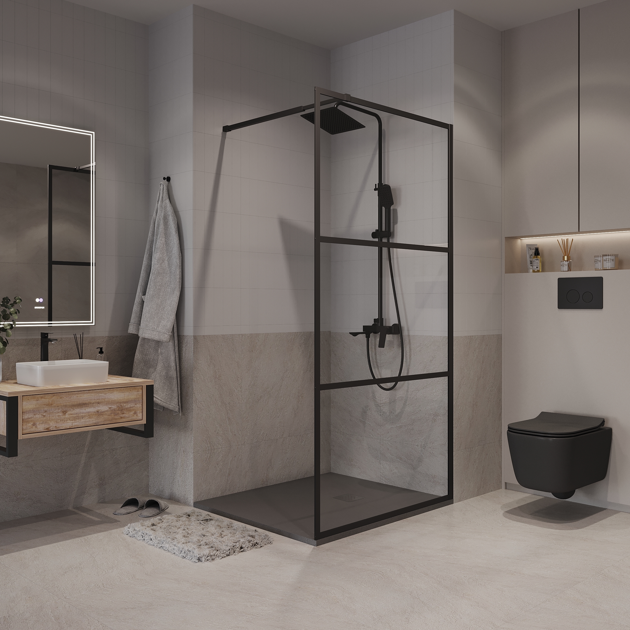 Душевая перегородка Niagara Nova NG-688-10BLACK, размер 1000xx1950 мм, профиль чёрный матовый, стекло прозрачное. Габариты регулировки (985-1000)x1950 мм, кронштейн в комплекте 70-120 см.