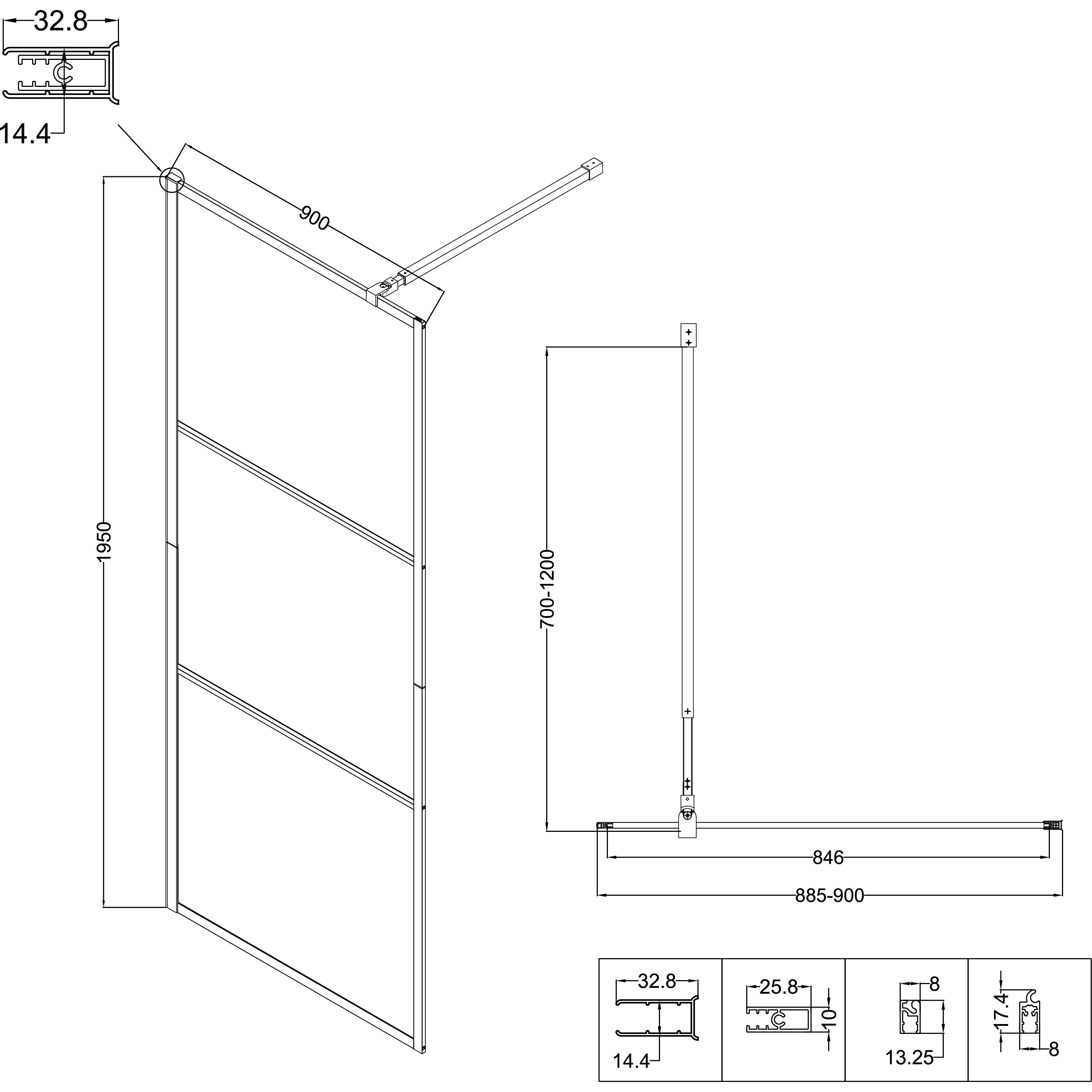 Душевая перегородка Niagara Nova NG-688-90BLACK, размер 900xx1950 мм, профиль чёрный матовый, стекло прозрачное. Габариты регулировки (885-900)x1950 мм, кронштейн в комплекте 70-120 см.