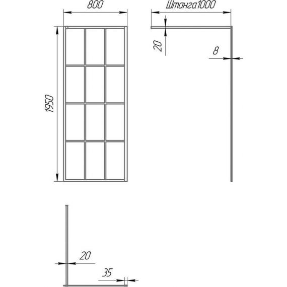 Профиль обеспечивает необходимую регулировку ± 20 мм при монтаже ширмы, а уплотнитель между стеклом и профилем защищает от вытекания воды.
