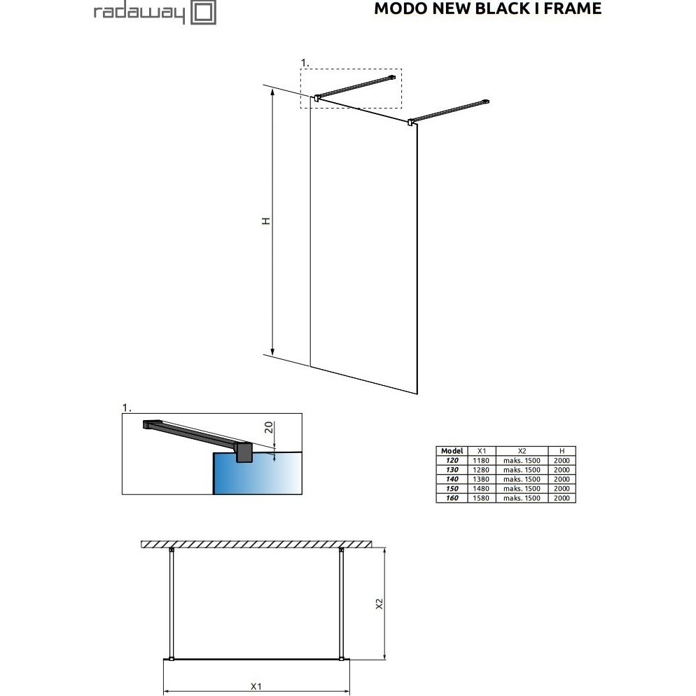 Душевая перегородка Radaway Modo New Black I Frame 140x200 см 388144-54-58 (стекло 8 мм), черный/прозрачное