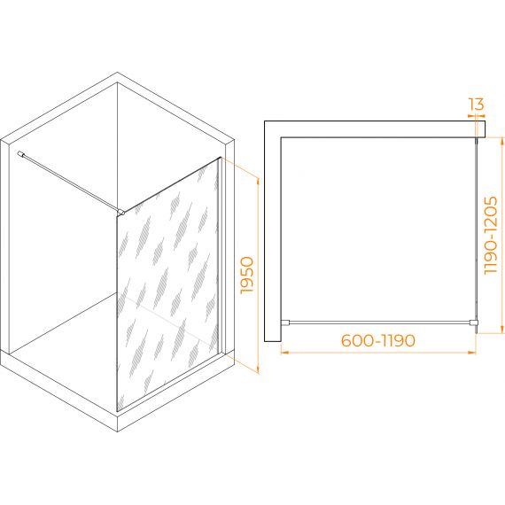 Душевая перегородка RGW WA-010B 120x195 см 351001012-14 (стекло 8 мм) с кронштейном в комплекте, черный/прозрачное