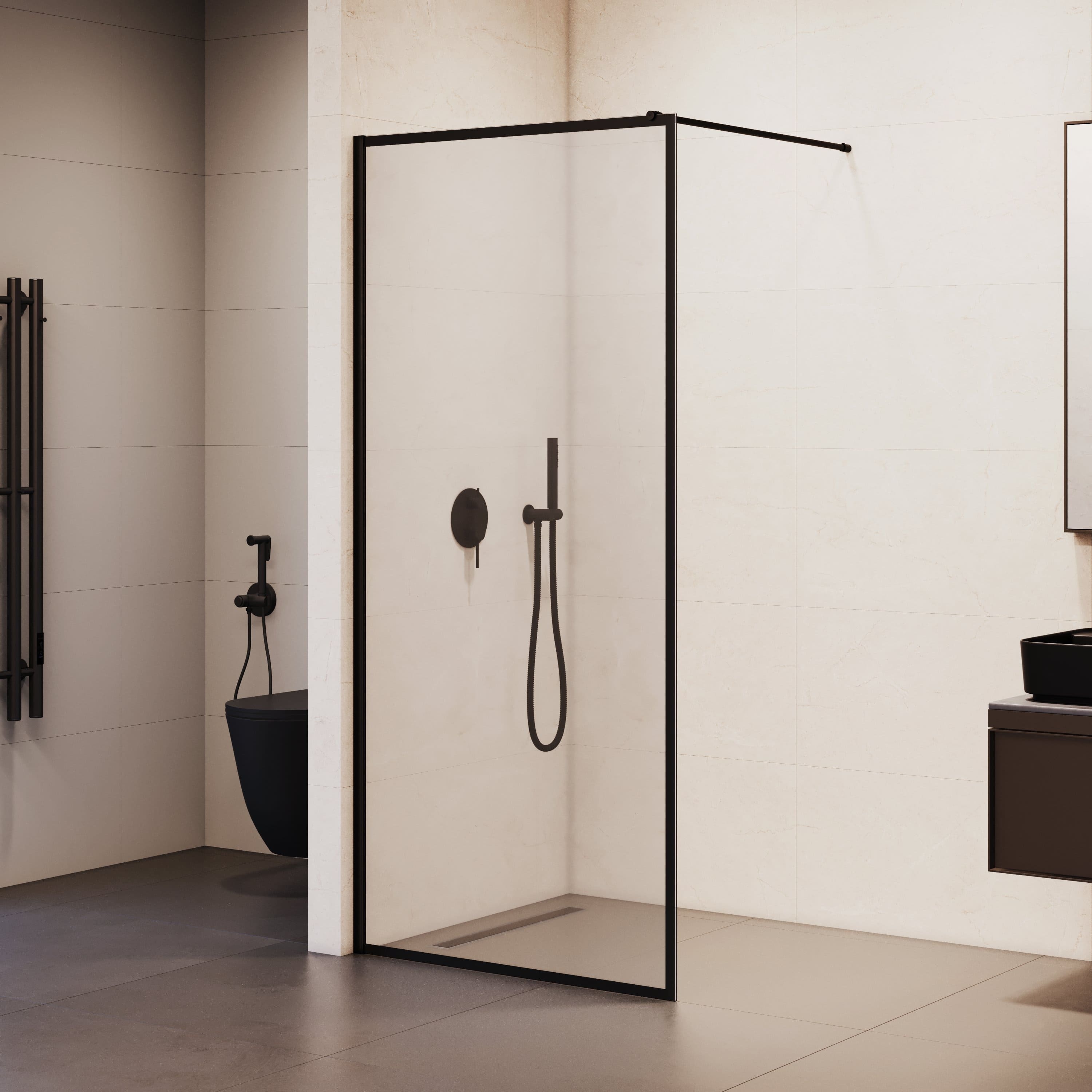Душевая перегородка RGW WA-012B с кронштейном в комплекте,, размер 1000х2000 мм, профиль чёрный, стекло прозрачное. Поддон приобретается отдельно.