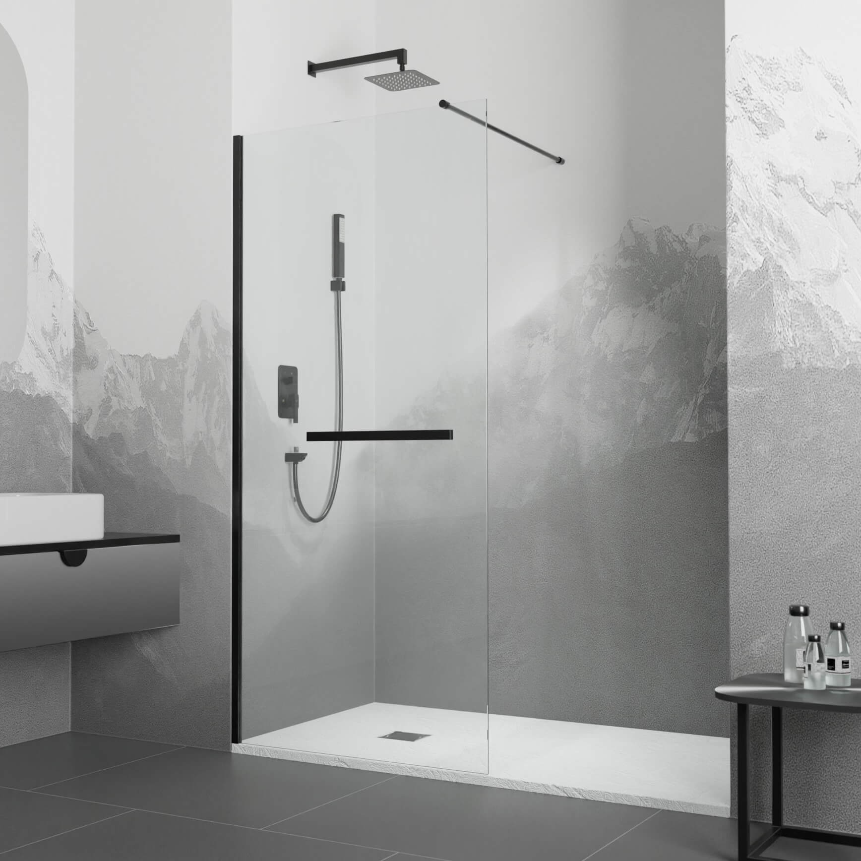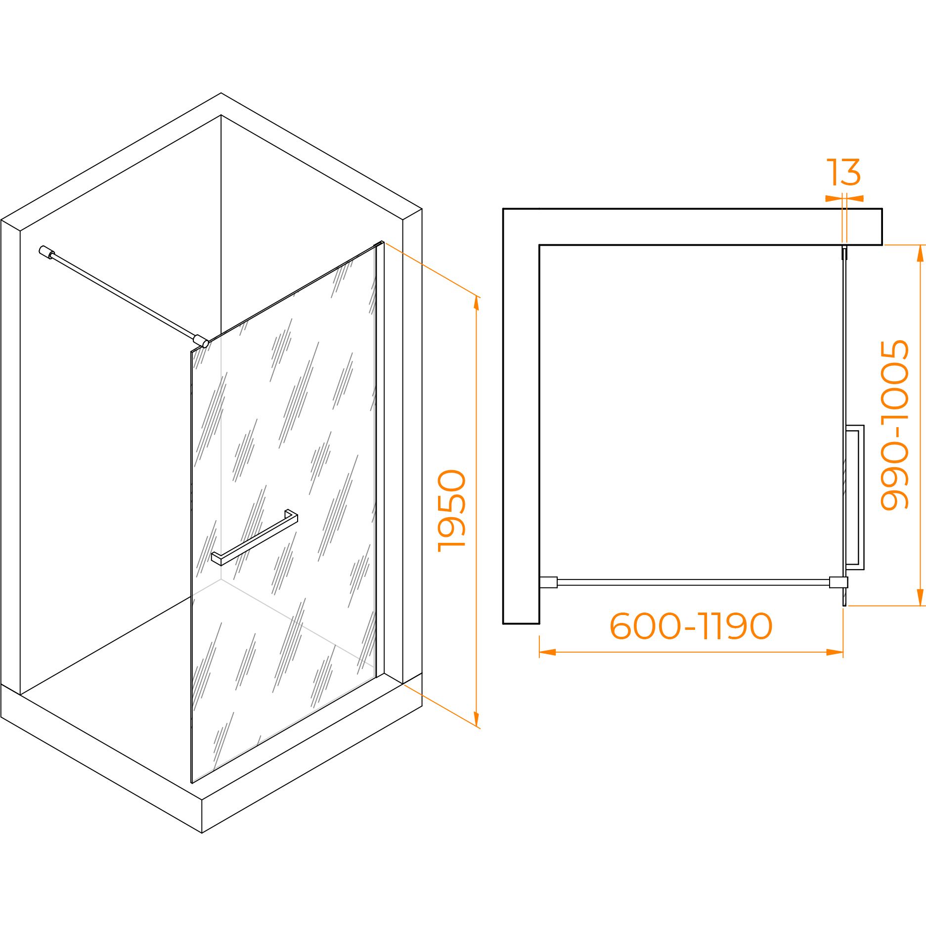 Душевая перегородка RGW WA-041B 100x195 см 35104010-14 (стекло 8 мм) с кронштейном в комплекте, черный/прозрачное