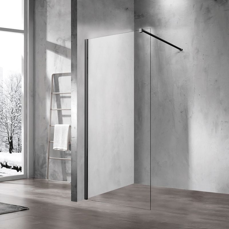 Душевая перегородка Vincea Walk-In VSW-1H800CLB с кронштейном в комплекте, размер 800х2000 мм, профиль - черный, стекло - прозрачное, 8 мм. Регулировочные размеры: 780-805 мм. Поддон приобретается отдельно.