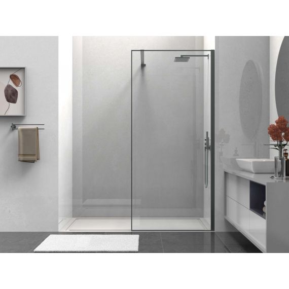 Душевая перегородка Vincea Walk in HS VSW-1HS800CLGM с кронштейном в комплекте, размер 800x2000 мм, профиль вороненая сталь, стекло прозрачное, габариты регулировки (780-800)x2000 мм.