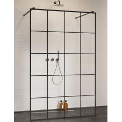 Душевая перегородка Radaway Modo X Black I Factory 1500х2000 мм. Цвет профиля – черный, цвет стекла – прозрачное с черной решеткой из керамической краски, 10 мм.