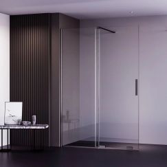 Душевая перегородка Veconi Korato KR90B-100-01-C4 1000х2000 мм в комплекте с регулирующими кронштейнами. Профиль - чёрный, стекло - прозрачное, 8 мм. Поддон приобретается отдельно.