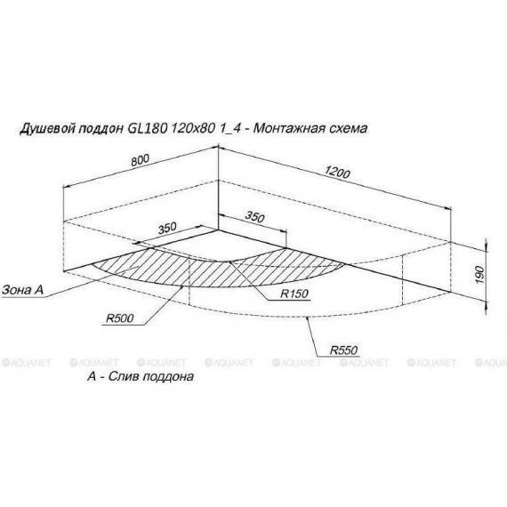 Поддон Aquanet GL180, сифон в комплекте, размер 1200х800х190 мм. Цвет белый.