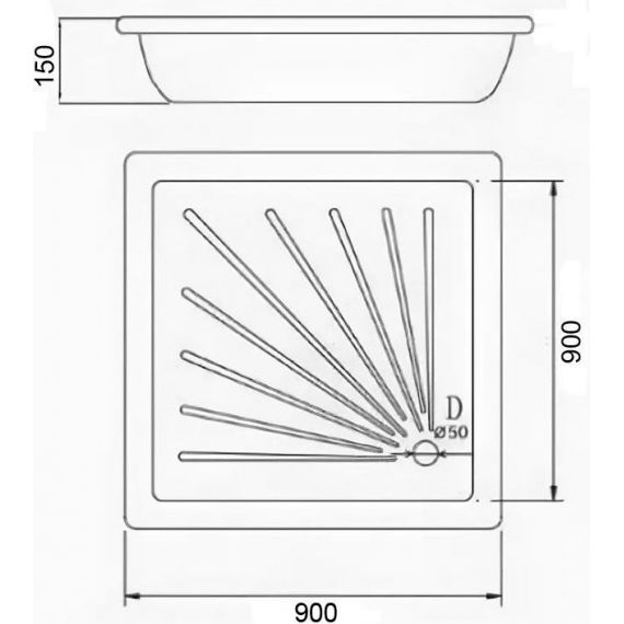 Поддон стальной Loranto Квадрат, размер 900х900х150 см, цвет белый.
