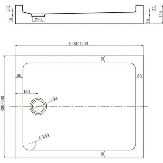 Поддон Veconi Tezeo 100x80 см TZ54B-10080-C5, черный