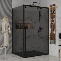 Душевое ограждение Ambassador Intense, размер 1200х1000х2000 мм, профиль чёрный, стекло тонированное 8 мм. Габариты регулировки (1185-1200)х(985-1000)х2000 мм, ширина входа 490 мм. Поддон приобретается отдельно. Дверь 120 см, душевая стенка 100 см.