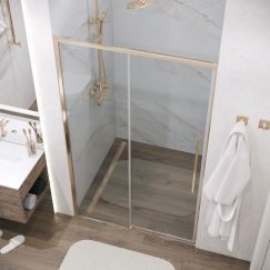 Душевая дверь Grossman Galaxy 100.K33.01.110.32.00, размер 1100x1950 мм, профиль золото сатин, стекло прозрачное. Габариты регулировки (1090-1100)x1950 мм. Вход 466 мм.