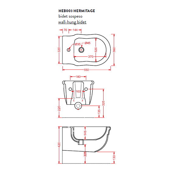 Биде подвесное ArtCeram Hermitage HEB003 01 00