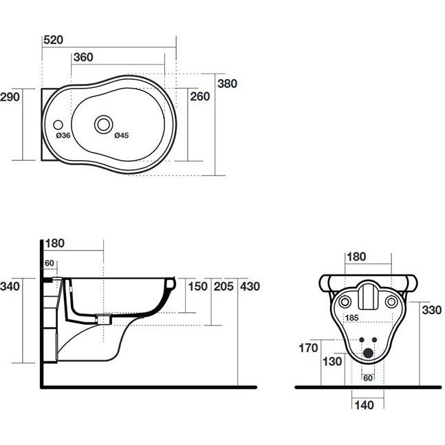 Биде подвесное Kerasan Retro 102601*1, цвет - белый.