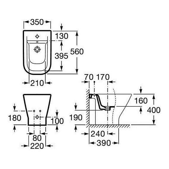 Биде напольное Roca Gap, цвет белый. Крышка приобретается отдельно.