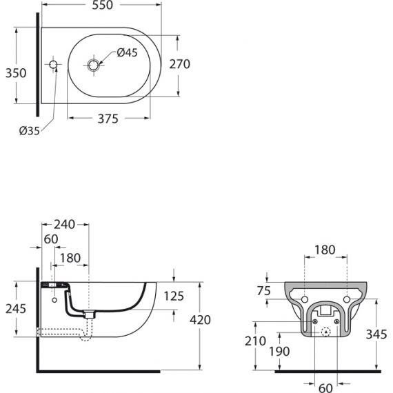 Биде подвесное Azzurra Nuvola, цвет белый.