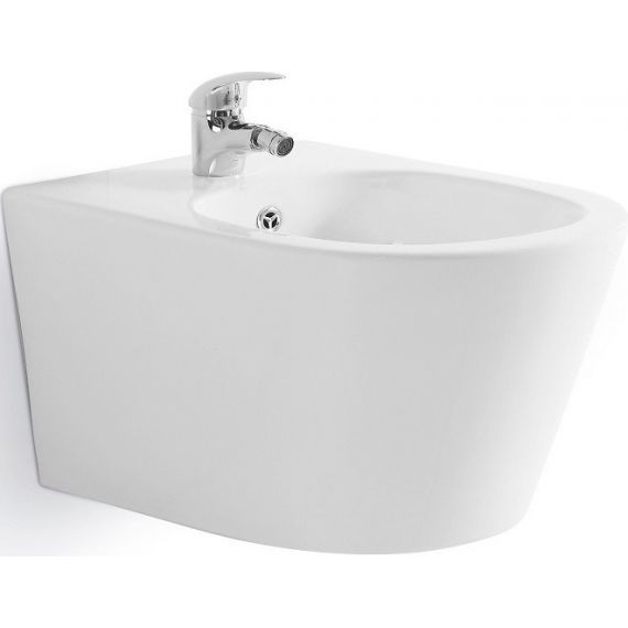 Биде подвесное CeramaLux NS-5378, с переливом, отверстием под смеситель, сливом-переливом, скрытыми креплениями, цвет белый.