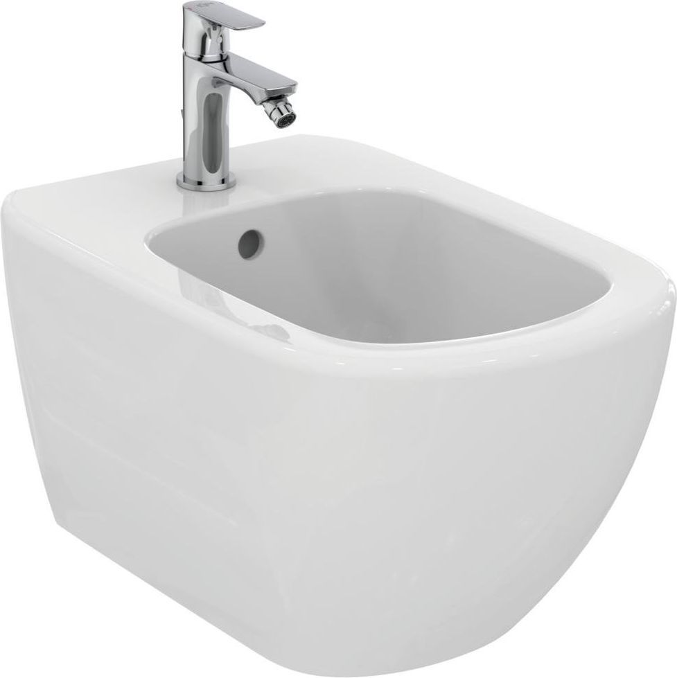 Биде подвесное Ideal Standard Tesi T3552V1 с отверстием под смеситель, крепежом TT0299327 (для полностью скрытого монтажа) и отверстием перелива, цвет белый матовый.