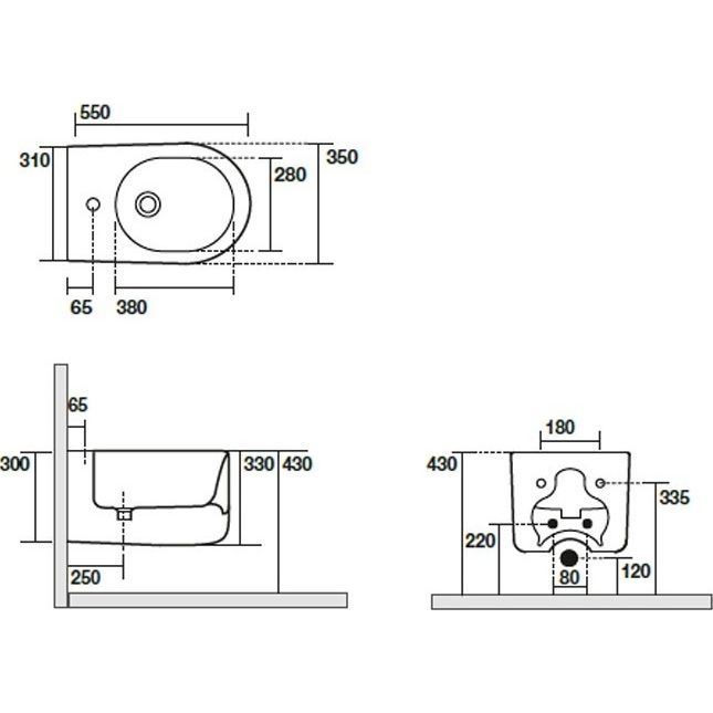 Биде подвесное Kerasan Nolita 532530*1 с креплениями WB9N и 1 отверстием под смеситель, цвет - белый матовый.