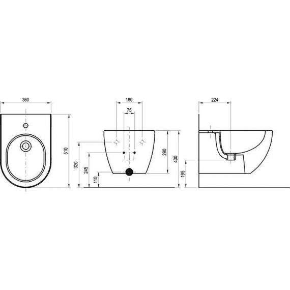 Биде Uni Chrome поставляется с отверстием под смесителе для биде