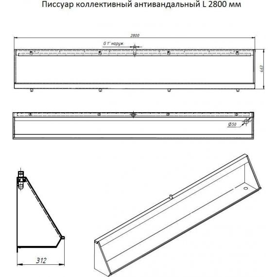 Тип: Писсуар желобковый подвесной