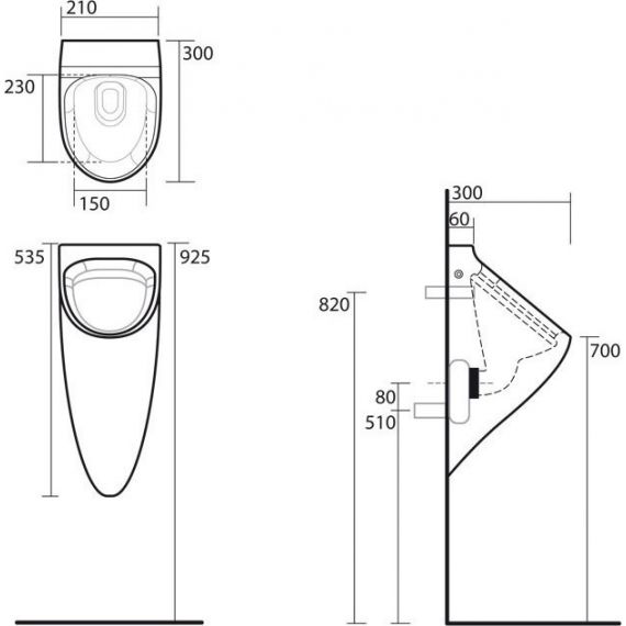 Писсуар подвесной Kerasan Aquatech 373501, в комплекте с сифоном, цвет - белый.