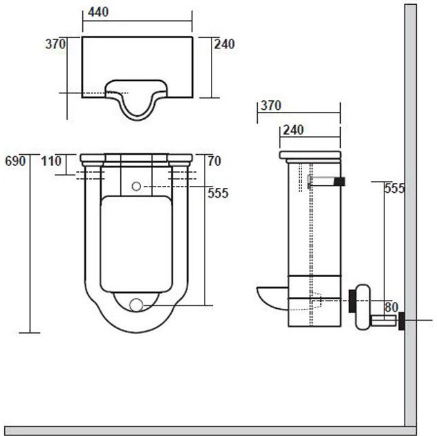 Писсуар подвесной Kerasan Waldorf 413001bi, с сифоном и комплектом крепежей, цвет - белый.
