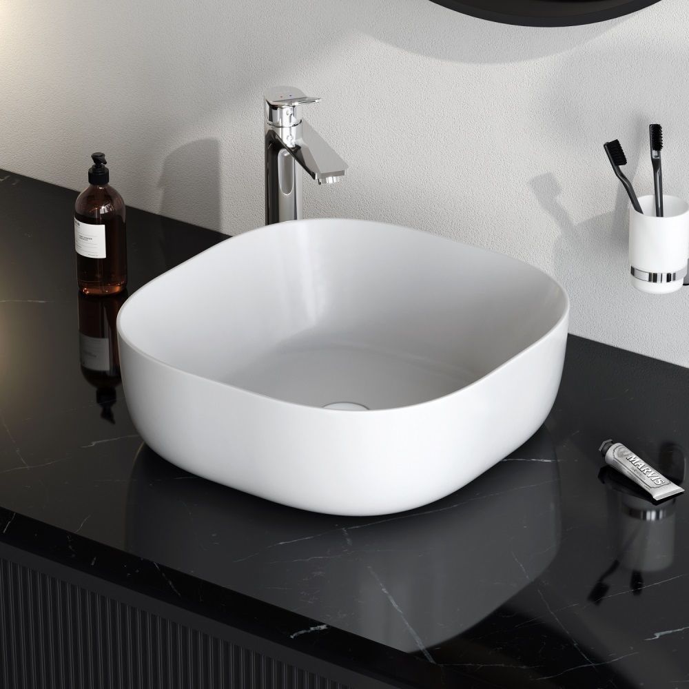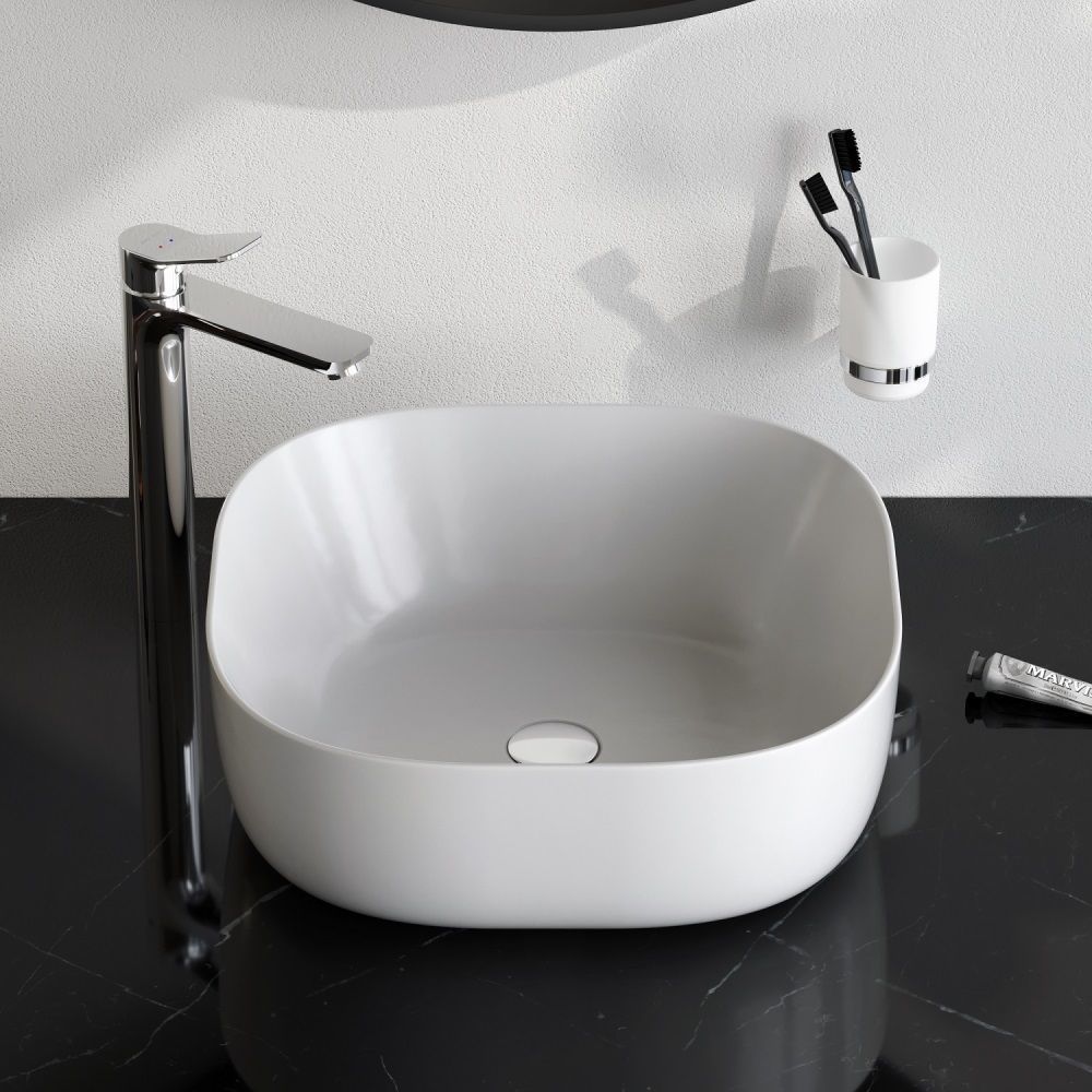 Размер раковины составляет всего 43 см, благодаря чему она может органично вписаться даже в ванную комнату с ограниченной площадью. Тщательно продуманная форма раковины исключает пролив воды за край, сохраняя чистоту столешницы и сокращая время на уборку.