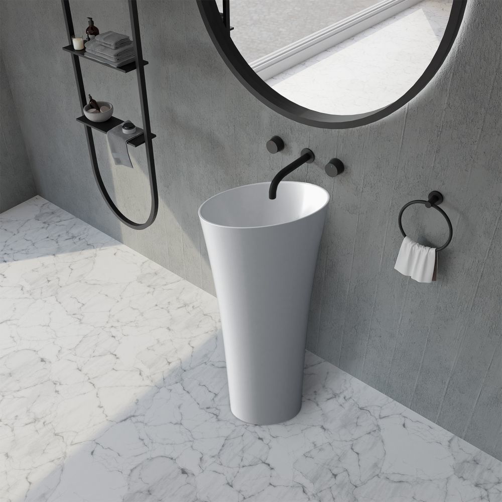 Раковина напольная Abber Stein 50 см AS2509 с донным клапаном, материал искусственный камень, цвет белый матовый.