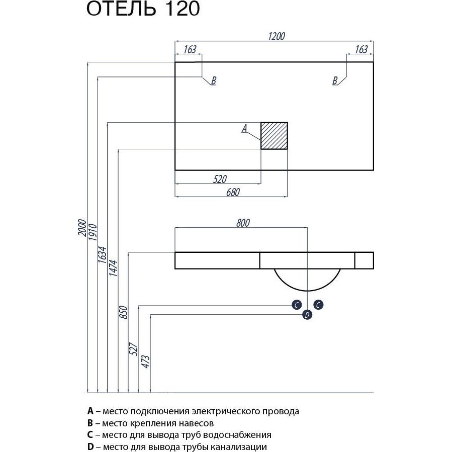 Раковина Акватон Отель 120 см 1A70093NOT01L