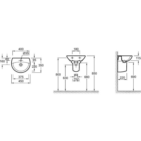 Раковина подвесная Jacob Delafon Odeon 45 см E4152-00