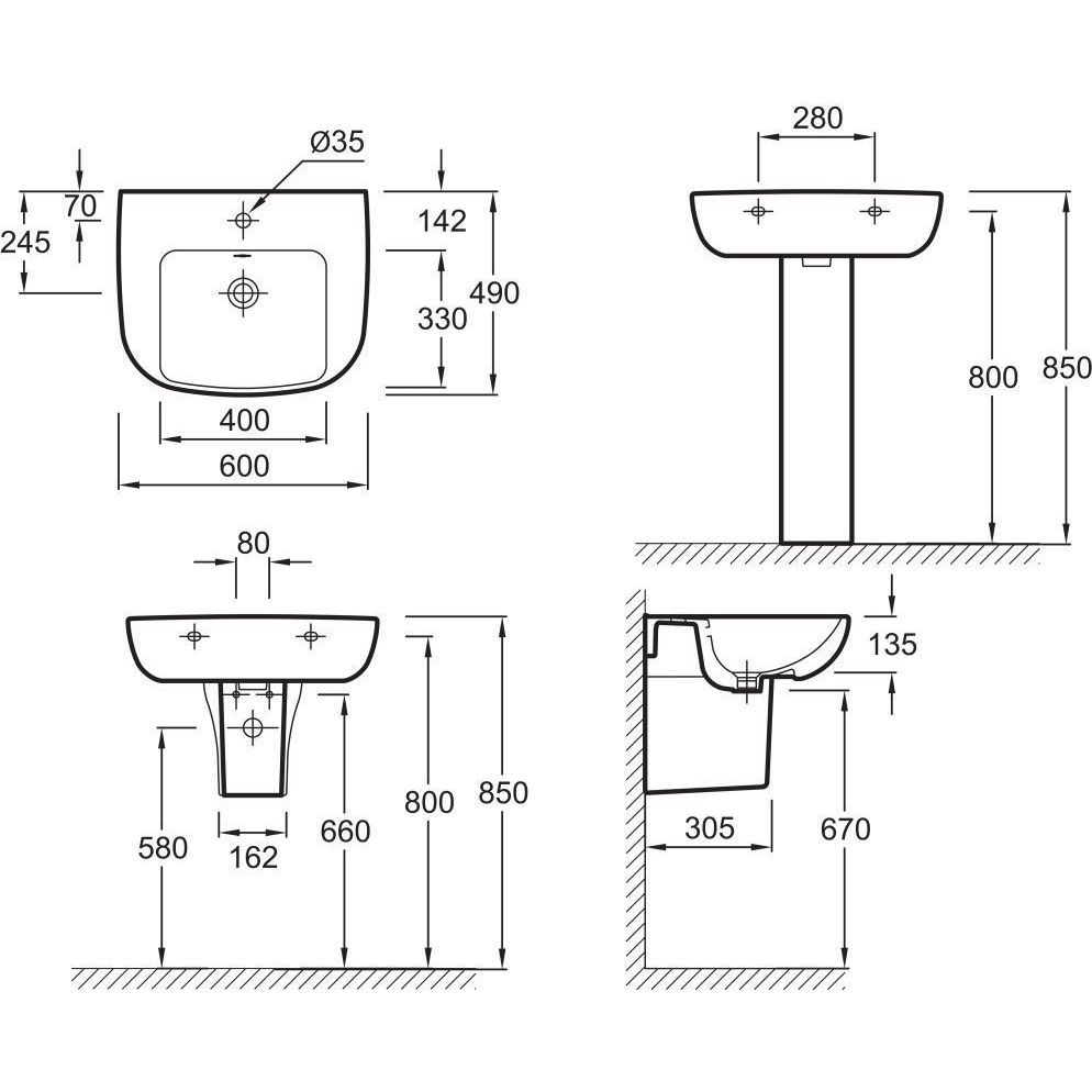 Раковина подвесная Jacob Delafon Odeon Up 600х490 мм E4736-00 с 1 отверстием под смеситель, цвет - белый.