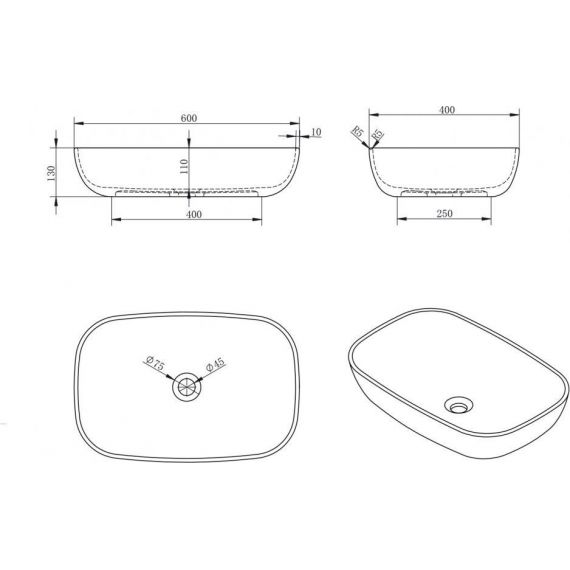 Раковина-чаша Abber Stein 60 см AS2620 с донным клапаном, цвет белый матовый.