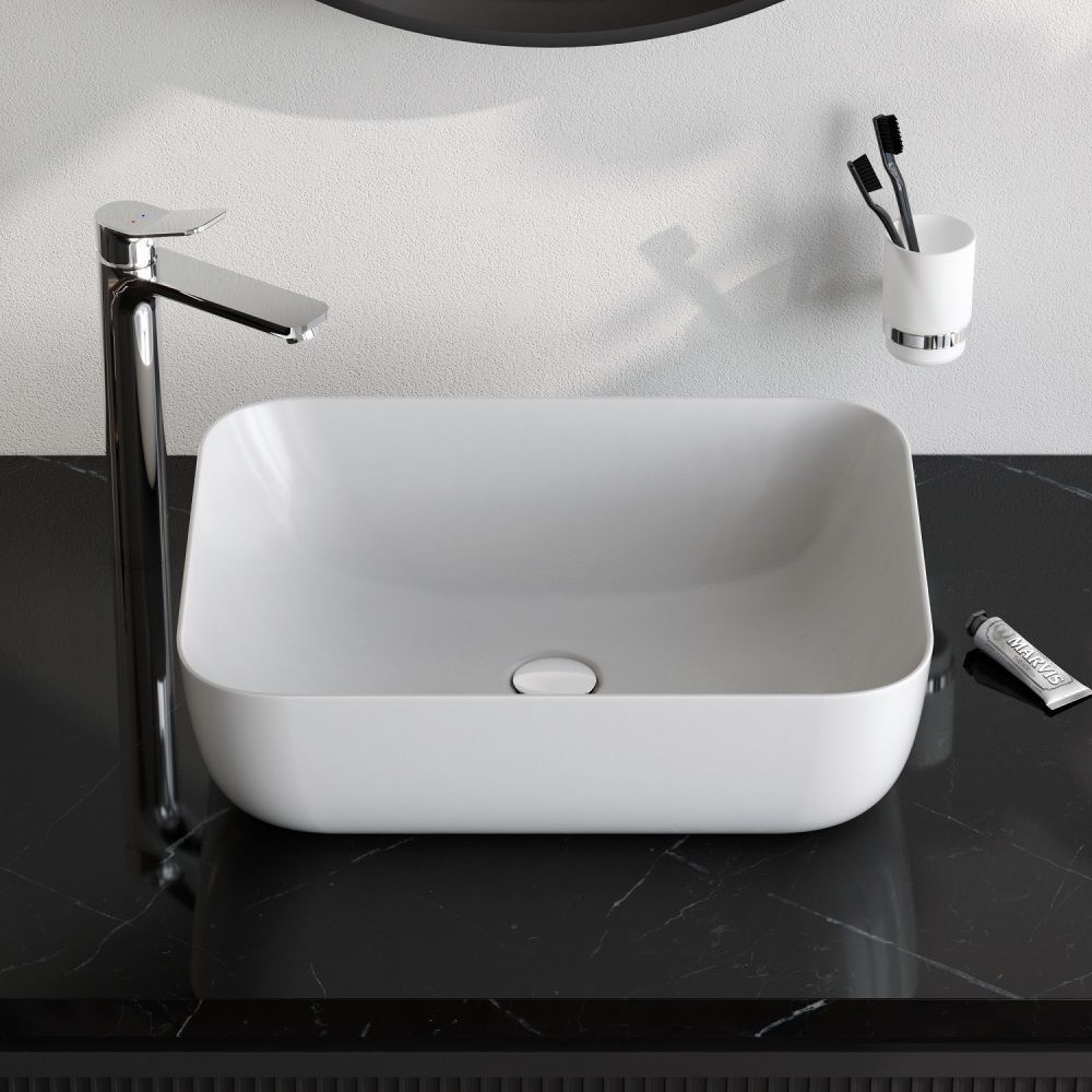 Тщательно продуманная форма раковины исключает пролив воды за край, сохраняя чистоту столешницы и сокращая время на уборку.