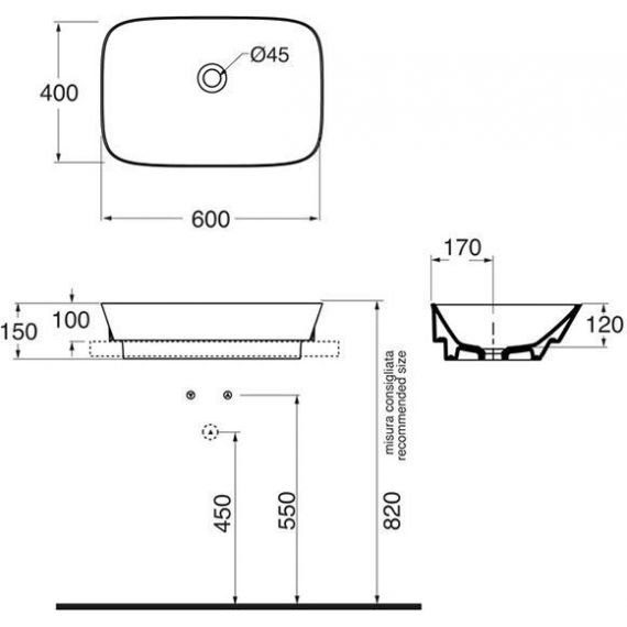 Раковина-чаша Azzurra Prua, размер 600х400 мм. Цвет белый.
