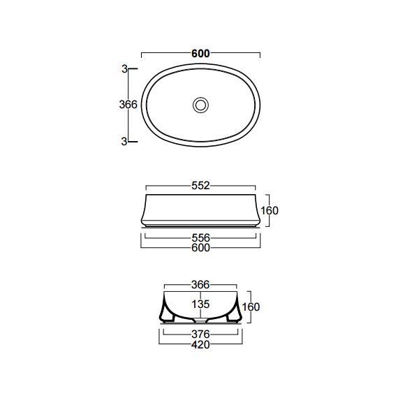 Раковина-чаша Simas Sharp, размер 600х366 мм. Цвет белый.