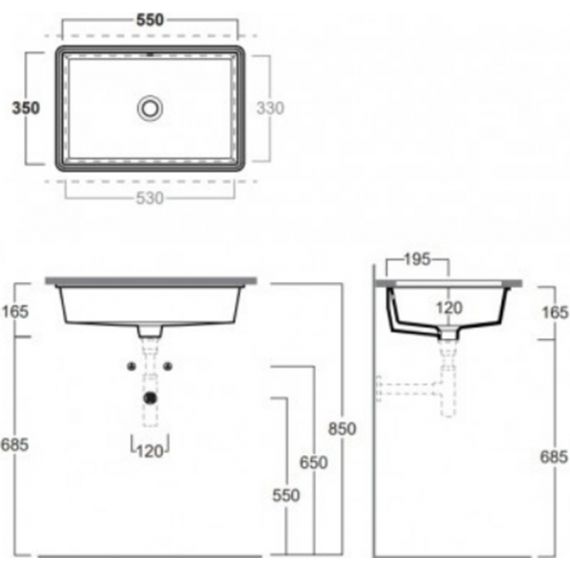 Раковина врезная под столешницу Simas Top e lavabi d'Arredo, размер 550х350 мм. Цвет белый.