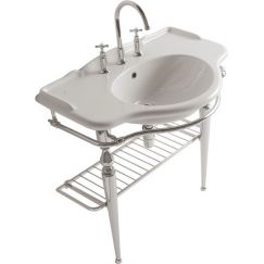 Раковина с консолью Kerasan Retro 105001*1, размер 1000х545 мм с креплением 7602, цвет белый. Консоль - 730090 с полкой-решеткой, полотенцедержателями и мыльницей.