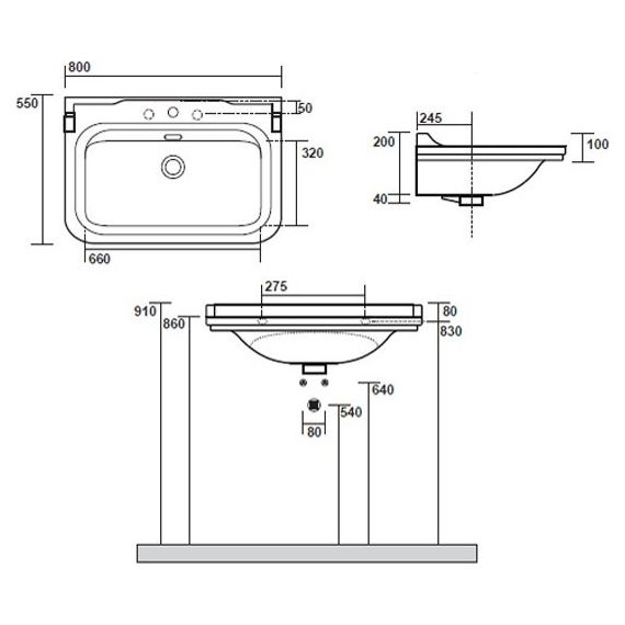 Раковина подвесная Kerasan Waldorf 80 см 4141K1bi/cr*1
