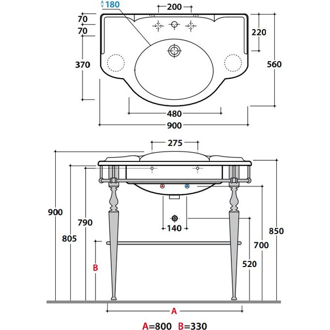 Раковина с консолью Globo Paestum PA056.BI*1, с комплектом креплений, размер 900х560 мм. Цвет белый.