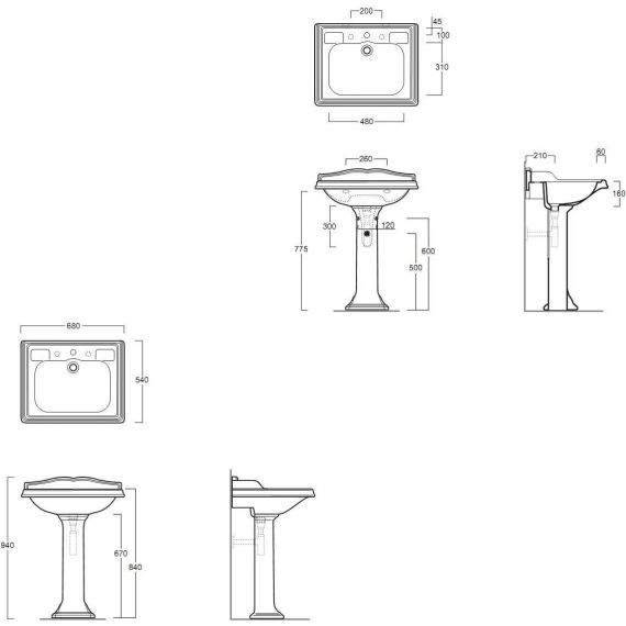 Раковина с пьедесталом Simas Arcade, размер 680х540 мм. Цвет белый.