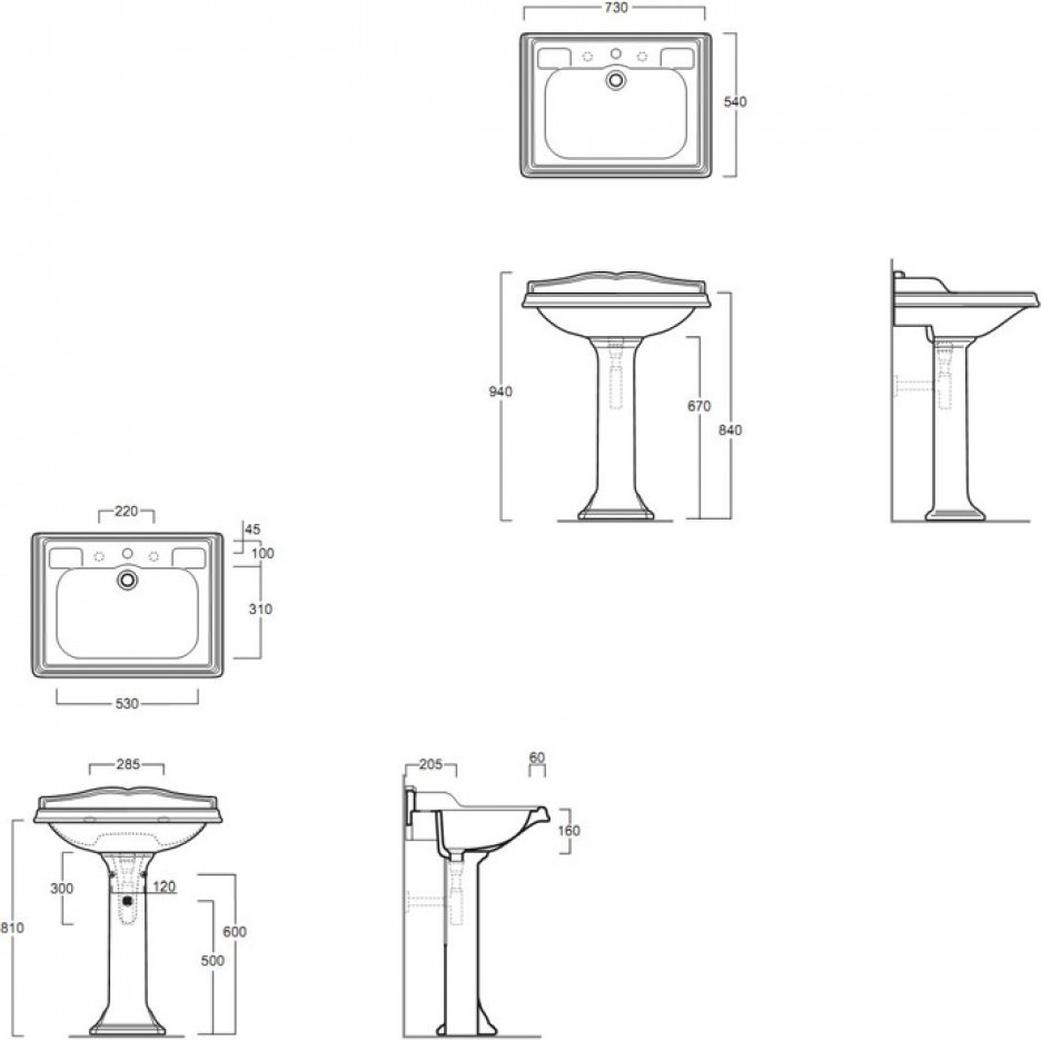Раковина с пьедесталом Simas Arcade, размер 730х540 мм. Цвет белый.