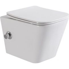 Унитаз-биде подвесной безободковый Boheme Avva, сиденье с тонкой крышкой микролифт. Цвет белый глянцевый.