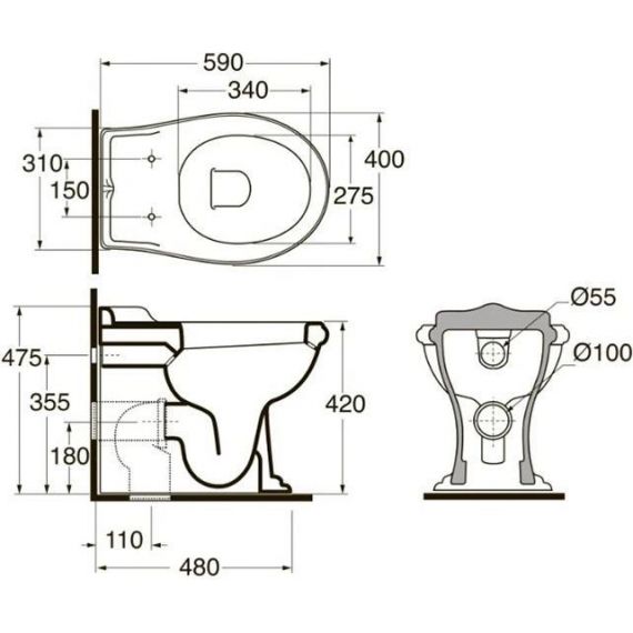 Унитаз приставной Azzurra Jubilaeum, цвет белый. Сиденье с крышкой для унитаза приобретается отдельно.