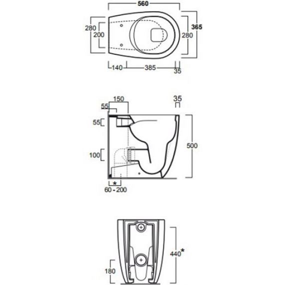 Унитаз приставной безободковый Simas Vignoni с креплением, цвет белый. Сиденье с крышкой для унитаза приобретается отдельно.
