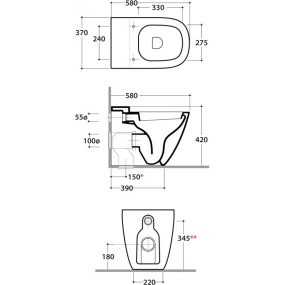 Унитаз приставной Globo Stockholm LA001.BI, крепеж в комплекте, цвет - белый. Сиденье с крышкой для унитаза приобретается отдельно.